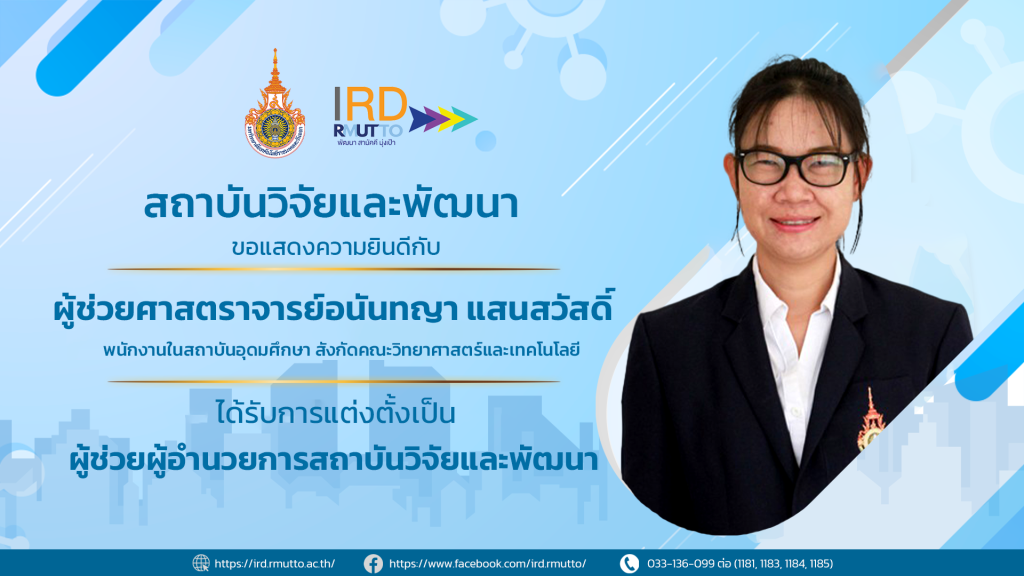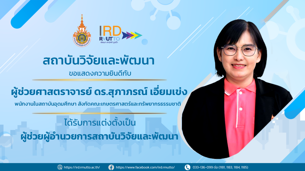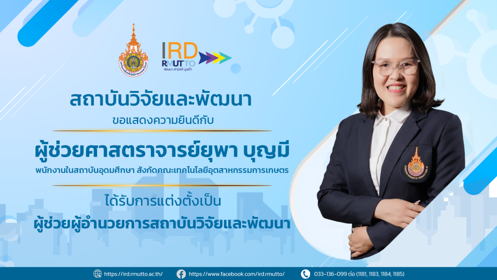 เมื่อวันที่ ๒๓ พฤษภาคม พ.ศ. ๒๕๖๘ ทางสถาบันวิจัยและพัฒนาได้รับการแต่งตั้งผู้ช่วยผู้อำนวยการสถาบันวิจัยและพัฒนา จำนวน 4 ท่าน และเพื่อให้การบริหารจัดการภายในสถาบันวิจัยและพัฒนา ให้เป็นไปด้วยความเรียบร้อยและมีประสิทธิภาพอาศัยอำนาจตามความในมาตรา ๔๐ แห่งพระราชบัญญัติมหาวิทยาลัยเทคโนโลยีราชมงคล พ.ศ. ๒๕๔๘ จึงขอแต่งตั้งผู้ช่วยผู้อำนวยการสถาบันวิจัยและพัฒนา ดังนี้