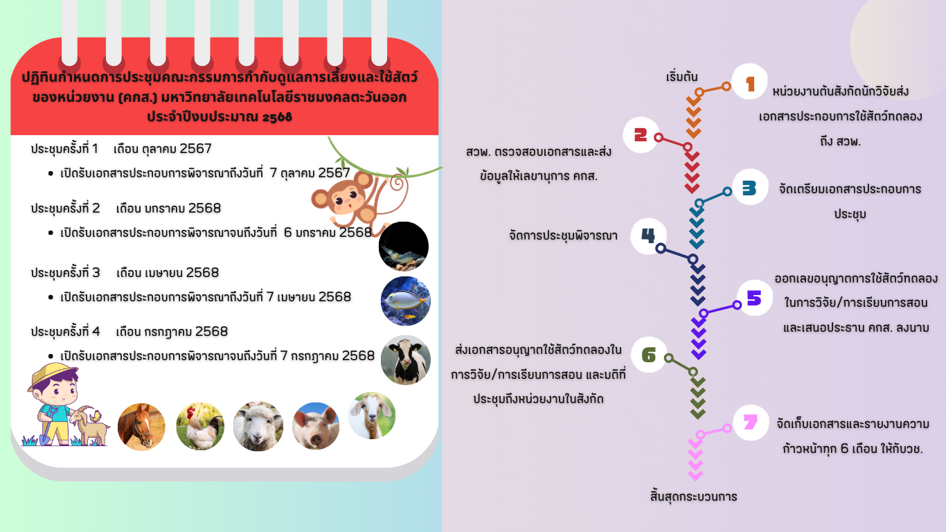 ปฏิทินการประชุมคณะกรรมการกำกับดูแลการเลี้ยงและใช้สัตว์ของหน่วยงาน (คกส.)